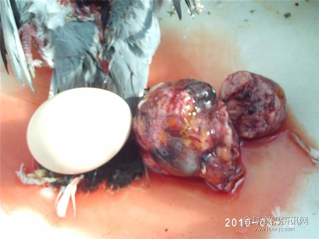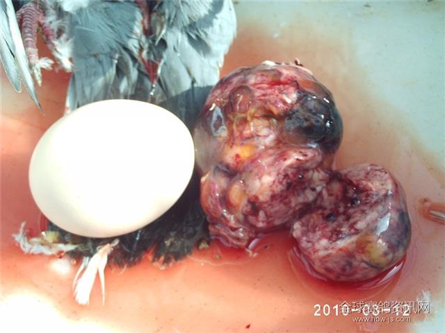 信鸽卵管肿瘤解剖面与鸡蛋的比较