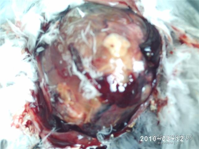 春节期间我仔细检查了这羽鸽子,确实龙骨与耻骨之间有一大块软的东西,象是鸽子憋着蛋。鸽子从地上飞不到1米多的窗口,没有精神,常眯着眼晴,无精打采。这是同期引进的一羽雄鸽与该鸽叫窝,我在地上撒了一些草,雄鸽便作起了窝。正月十五过了蛋仍然憋着,这才引起了我的注意,这不是鸽蛋,可能是信鸽生殖器官囊肿。我思量了许久幡然醒悟,难道人家就将病鸽给了我们?那原棚的管理员、教练员就从不上手鸽子?着实奇怪,让人愤慨,让人有苦难言。