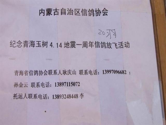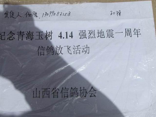 来自全国各地,为玉树赈灾一周年纪念祈福的部分信鸽