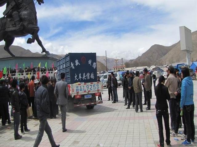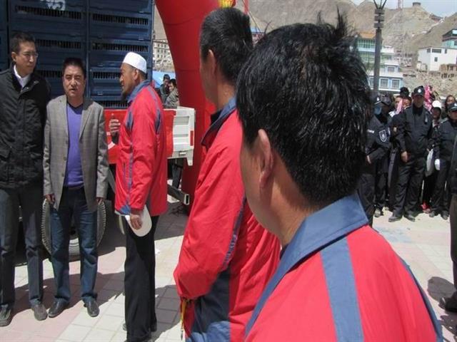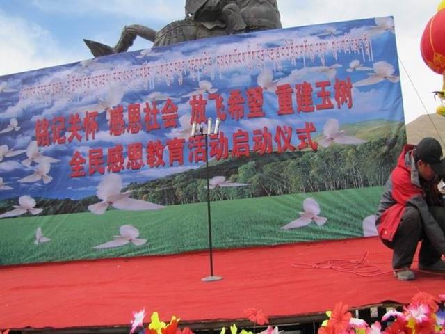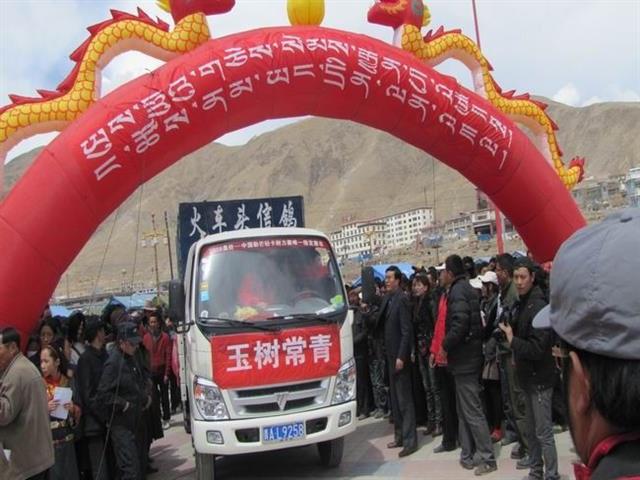 放飞车开进玉树州结古镇纪念玉树地震一周年活动现场