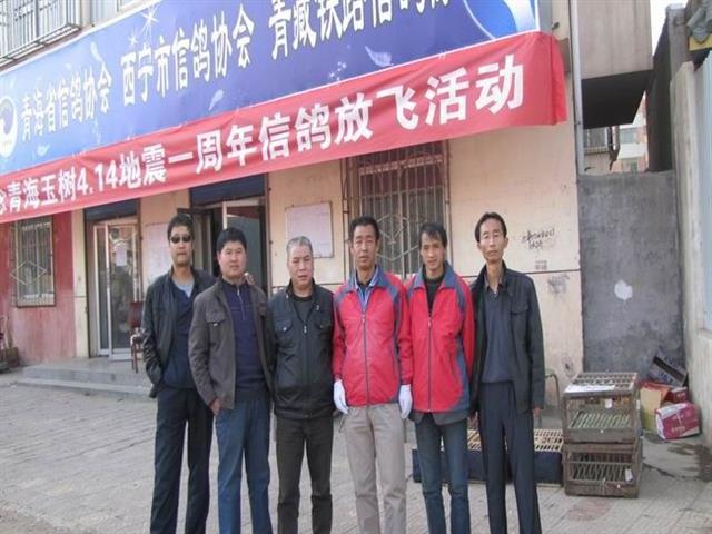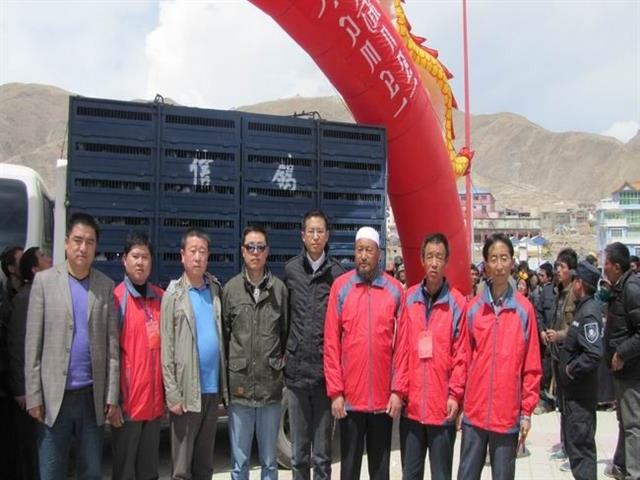 鸽会工作人员(左数第三位:来自四川押运四川捐赠信鸽来青海的鸽友)