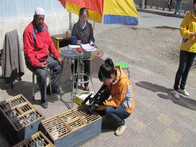 青海卫视记者对集鸽现场进行拍摄