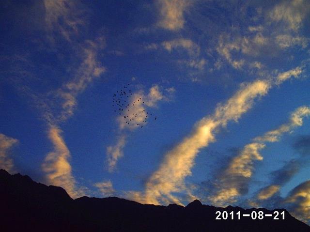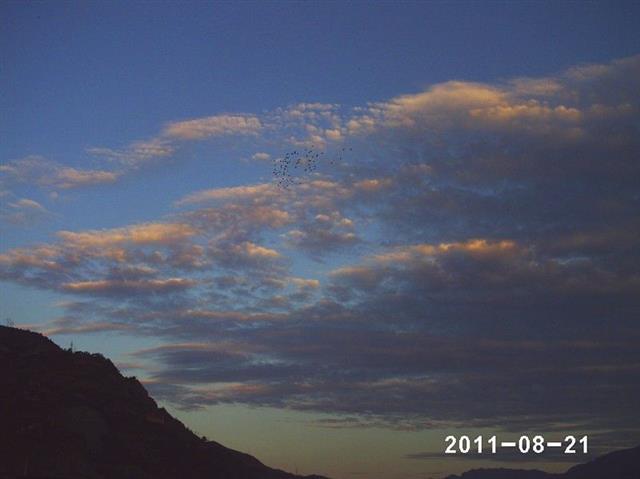 4、“灵鸽翔天空”,连续18天的高温天气让人颇感秋老虎的闷热难耐,19日的降雨使气温由36度下降到30度以下,喜迎小到中雨,天气渐凉。灵鸽翔天,秋高气爽,天公作美,心情舒畅。