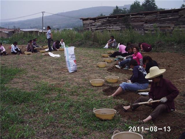 2、“坐地挖半夏”,西和挖半夏时,人都平座在地里,一排排的很整齐。但挖半夏的过程却颇费周折。