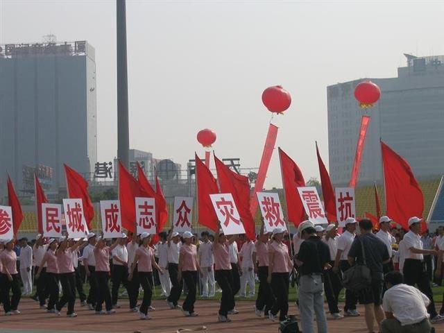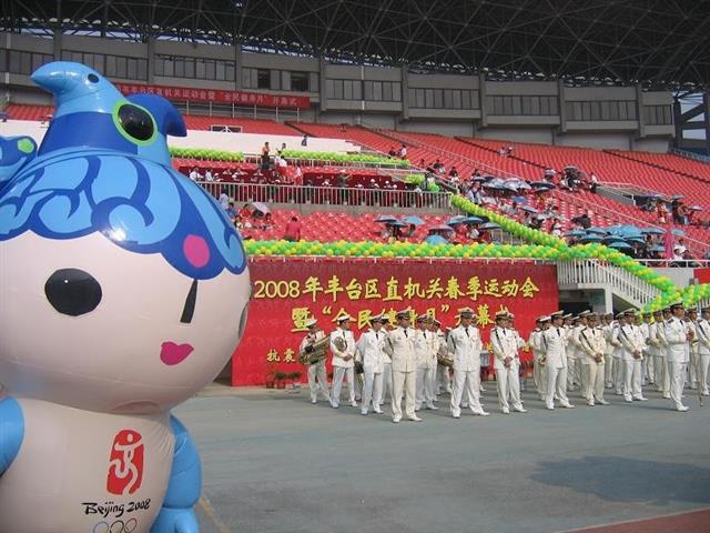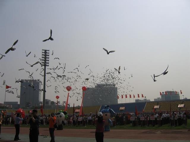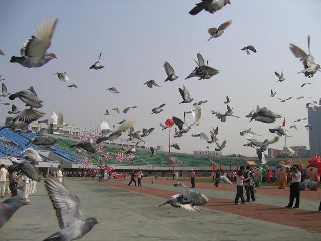 5月24日上午丰台区信鸽协会为全区全民健身体育节放飞2000羽彩鸽喜迎奥运。
