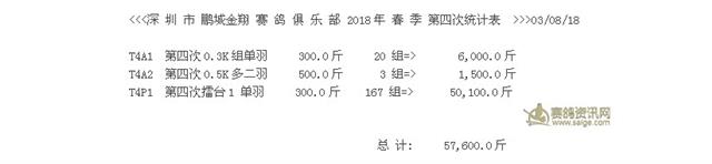 鹏城金翔 赛 鸽 俱 乐 部 2018年 春 季 第四次插组统计表