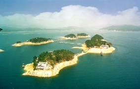 百岛洞头 逶迤仙霞山脉,茫茫东海,八百里瓯江千百年的不息奔流,孕育我脚下承载这块瓯越文明的沃土。据载,洞头早在唐时已建置区划,然千百年来,生息在海岛上的人们,曾发出“宁隔千重山,不隔一层水”的叹息;同样,内陆的人们因难以企涉也望洋兴叹。这33海里的万顷汪洋俨然如一道无情的天堑。 早在三十年前的温州人就想到了凭高度发达的现代生产力,跨越沧海桑田这个前瞻性的概念。然越是前瞻性的越是要建立在科学的基础上,2000年6月14日,这一天,天气格外晴朗,宁静的瓯江口海面平缓涨潮,测绘卫星于涨潮时分正好在温州上空,现代人正是利用卫星遥感分析测算出瓯江潮水的各项参数。又过了六年,当日历翻到了2006年4月29日这一页,洞头孤岛的历史终于结束了。洞头与温州间的豪华空调客车,每15分钟一班,滚动发车。陆岛这一连,从此洞头不再是海岛而是半岛了。这一连,温州也不再是瓯江时代而是东海时代。 这一连,温州的后花园便自然定位在百岛之县的洞头了。 洞头半岛主要由温州浅滩工程, 洞头五岛连桥工程, 灵昆大桥等组成。长达14.5公里的中国第一跨海大堤首将隔海相望的霓屿与灵昆紧紧相连,再向内沿伸,通过多座跨海大桥连接,便形成了洞头半岛这个格局。时下别地岛屿虽也建起了跨海大桥,但本岛外,受水隔制约,转用舟楫总诸多不便,而洞头这一连与内陆洋洋爽爽接轨了。 百岛洞头,犹如一串嵌在东海万顷碧波之上的珍珠,山海兼胜,风光旖旎,以石奇、滩佳、洞幽、鱼丰、岛密著称,域区由103个岛、259个礁组成,辖3镇3乡,县域总面积892.3平方公里,其中陆域面积100.3平方公里,总人口12.59万人。这103个岛中只有14个岛上住人,其余岛屿有的是石油开采基地,也有的被买断经营权搞游乐的,可还有很多岛屿至今还蒙上“神农架之谜”。因洞头半岛开发才一年半,罗马也不是一天建成的。就说那鸟岛吧,你想上岛捡个鸟蛋的话,顷刻间遭群鸟袭击,将你全身洒满鸟屎,一低头地上还有蛇正向你眈眈相视。 洞头岛上冬暖夏凉,年平均气温17.3摄氏度,是一个集绝壁、奇礁、海上运动、渔乡风情于一体的海滨旅游度假胜地。尤其是周末,数以千计的车队,一头连着温州,一头伸向海湾,这就是洞头无穷的蓝色魅力,有人称之为中国东南的“夏威夷”。夏季来的话,首选大沙岙海滨浴场了,纵身跃入了海的怀抱;你是来登山的话,那便上仙叠岩一睹半屏山风采;你是来接受爱国主义教育的话,洞头“先锋女子民兵连”名扬华夏;然最不能错过的是要去登一登“望海楼”,登斯楼也真乃美哉斯也!令人双目为之一净。洞头的美,美在于蓝,是的,洞头是东海之滨一道迷人的蓝色风景线。