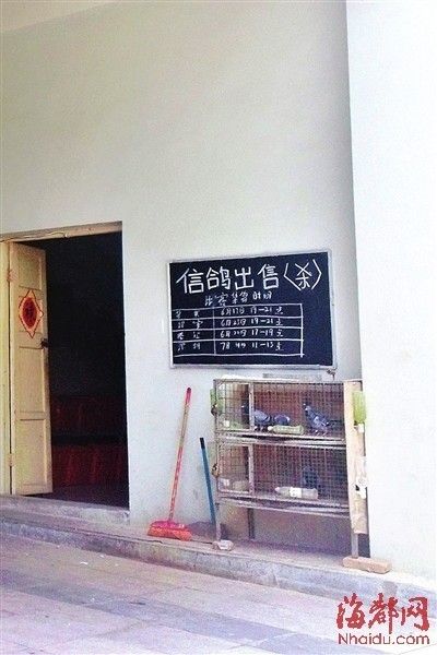 昨日上午,记者在莆田市信鸽协会荔城分会看到,其门口有一个鸽笼,里面方关着六七只信鸽。在鸽笼上面挂着一个小黑板,上面写着信鸽出售,还可以帮忙宰杀。见记者盯着信鸽看,信鸽协会里出来一名工作人员,询问记者是否要购买。