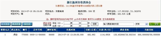 7月10日早5点15分,温州市春季500KM一岁鸽大赛在安徽巢湖开笼放飞。本次比赛集鸽598羽,空距482KM。