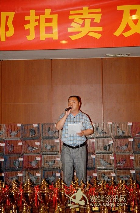 北京正明赛鸽俱乐部2014年春季信鸽竞赛颁奖,拍卖暨选举鸽友代表大会在云龙海鲜大酒店隆重召开 2014年5月24日17时,北京正明赛鸽俱乐部春季获奖鸽颁奖暨选举鸽友代表大会在北京云龙海鲜大酒店隆重举行。 北京正明赛鸽俱乐部董事长齐寿岩先生容光焕发神采奕奕,到场领取奖金的鸽友喜气洋洋。赵国欣总经理宣布大会开始,齐寿岩董事长作大会发言,他代表俱乐部向所有来宾,获奖鸽友致以热烈的欢迎。希望大家在今后俱乐部举办的信鸽竞赛中再接再厉勇往直前,再创辉煌! 接下来,进行了获奖鸽的拍卖活动,获奖鸽大部分由鸽子的主人拍回,由于特比环参赛鸽的特殊性拍卖场上气氛平稳,秩序井然。只有在冠军鸽的拍卖过程中,骤起波澜,本季最大赢家刘国英先生谨慎出手,齐寿延董事长当仁不让,经过几个回合的交锋,本季冠军鸽以八万元的本场最高拍卖价回到主人的麾下! 选举鸽友代表的活动把此次活动的气氛推到高潮,董事长齐寿岩先生和李明经理 及媒体人将做好的阄,奉献给在座的鸽友面前,请大家踊跃抓阄。会场气氛极为热烈。最后七名代表全部产生共同上台亮相,台下鸽友报以热烈的掌声。 一年一度的颁奖选举鸽友代表和联谊活动 在祥和的气氛中落下帷幕。