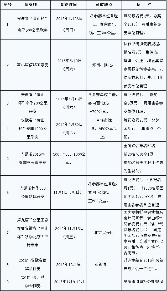 2015年安徽省信鸽协会竞赛规程出炉
