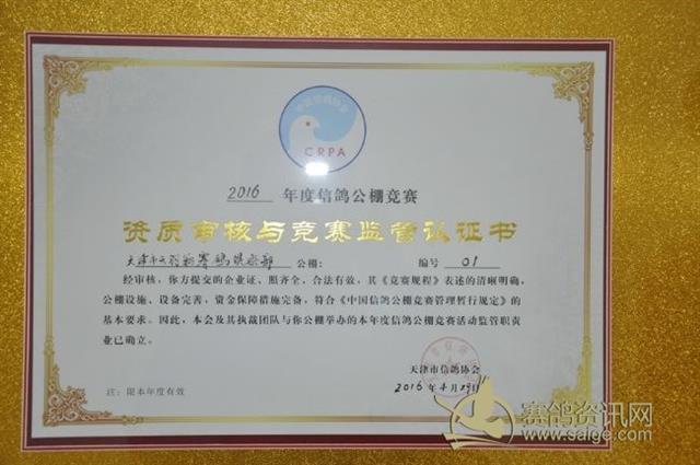 天津鸽协检查五家公棚 颁发监管认证书(图)