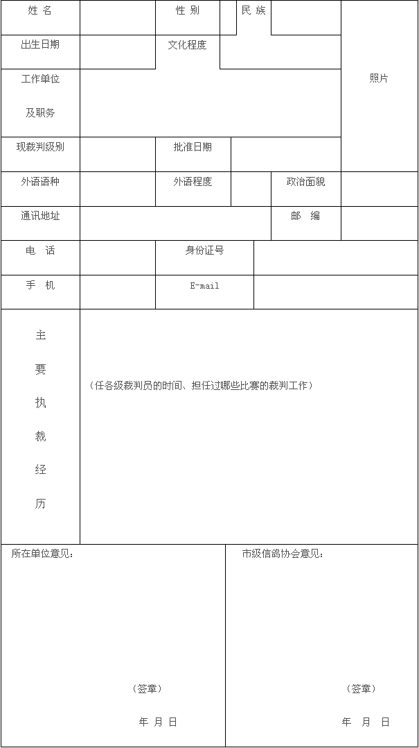 附件一:信鸽一级裁判员培训考试申请表