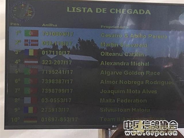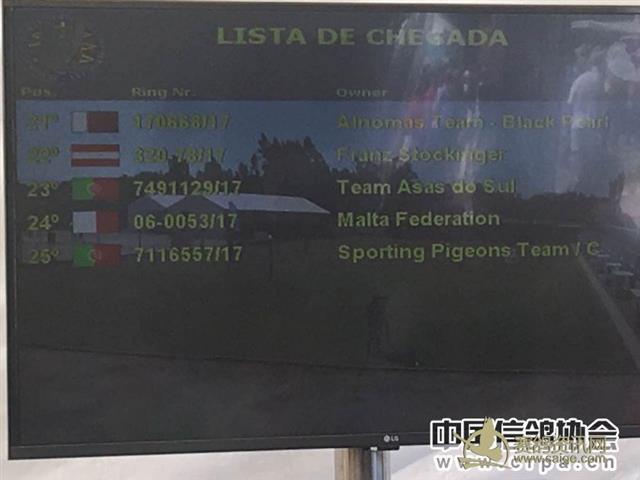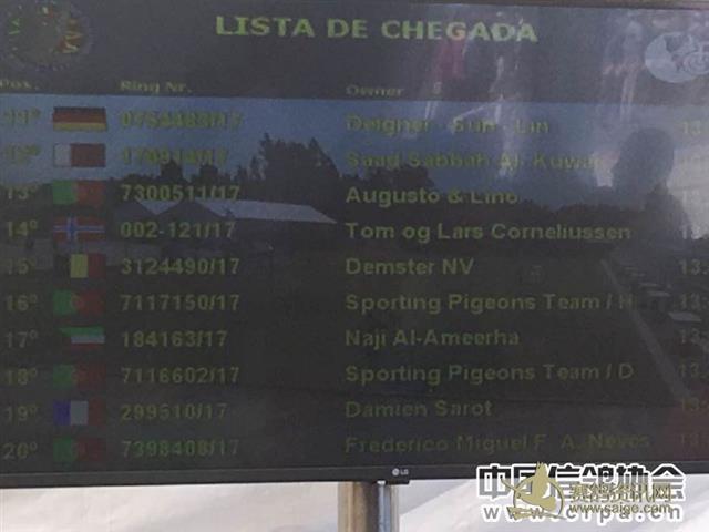2017年FCI世界锦标赛已经见鸽,葡萄牙赛鸽取得第一名。前200名中中国赛鸽归巢三羽,分别是46名、103名、127名。