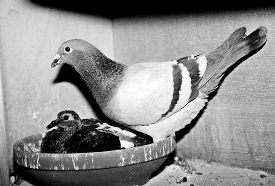 这个黄金配对的子孙,不论过了几代,其祖先的影响力都没有减弱,甚至可以说左右了我的鸽舍其鸽子的品质。当然,在其间也经历过了数次的异品种交配,但是白头和身体的班点,以及白色的飞羽,仍然定期性地出现在现在的鸽子身上。那是1945年时原始配对的主要特徵,对我而言这是有非常大的意义的。