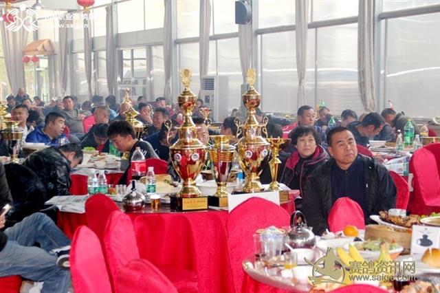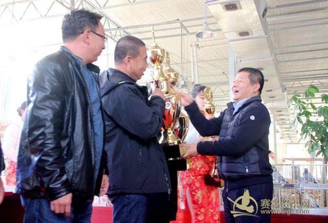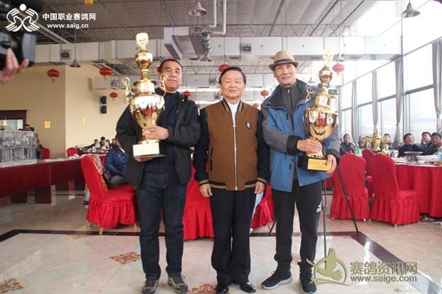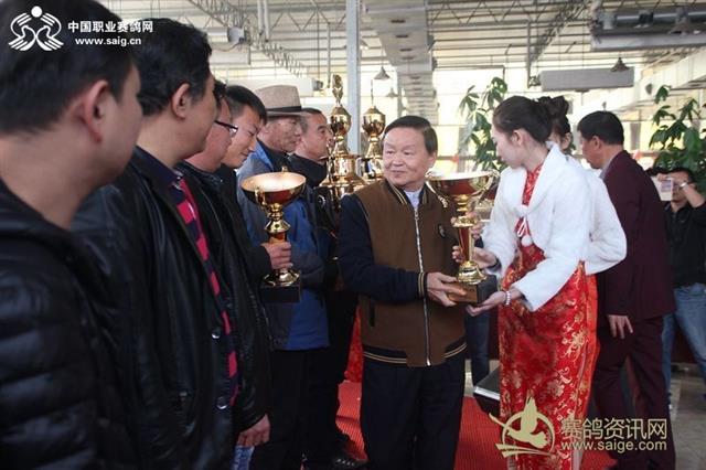 北京爱亚卡普公棚董事长王志军为获奖鸽友颁奖