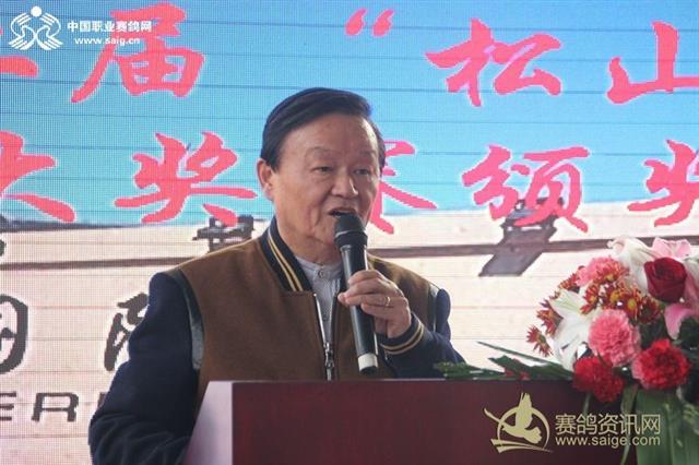 北京松山赛鸽国际联盟董事长李松山为获奖鸽友颁奖