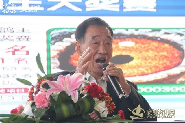 中国前驻外大使杨伟国为获奖鸽友颁奖