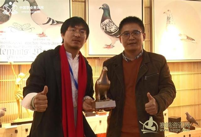 中国职业赛鸽网CEO申延峰与武汉福齐赛鸽俱乐部总经理项求毅合影