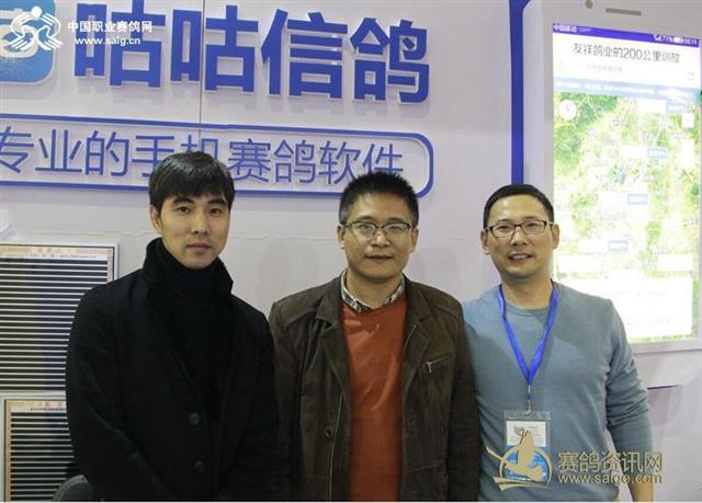 信鸽会董事长李新月、中国职业赛鸽网CEO申延峰、咕咕信鸽董事长孙新苗合影