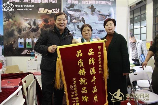 北京著名鸽友潘世禄向爱丽丝赠送锦旗