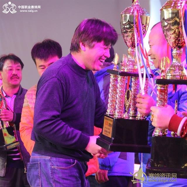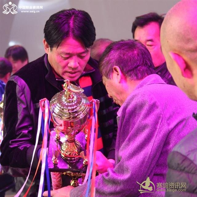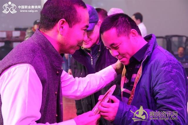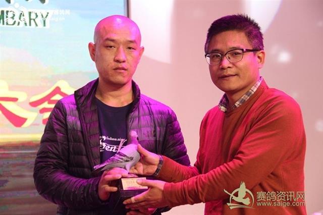 中国职业赛鸽网CEO申延峰为鸽王冠军颁奖