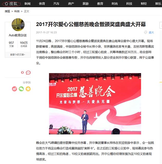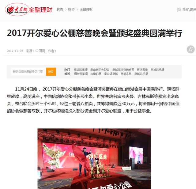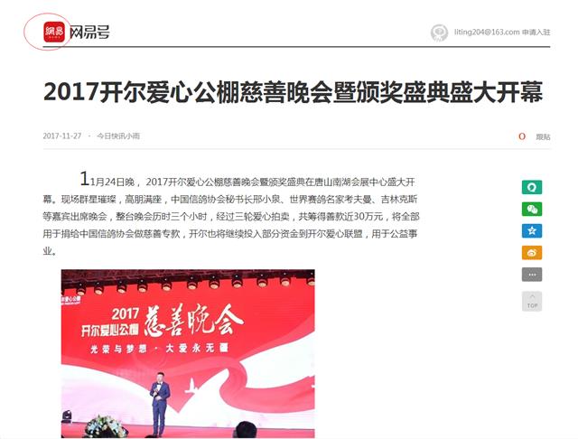 2017开尔爱心公棚慈善晚会,不仅是一次有影响力的行业盛会,更是一场爱心与公益的分享会,58家业外媒体的播发报道,让更多人了解赛鸽行业,了解赛鸽人拥有一颗做公益做慈善的赤诚之心!同时希望更多的赛鸽人加入开尔慈善大家庭,帮助更多在困难中前行的人!