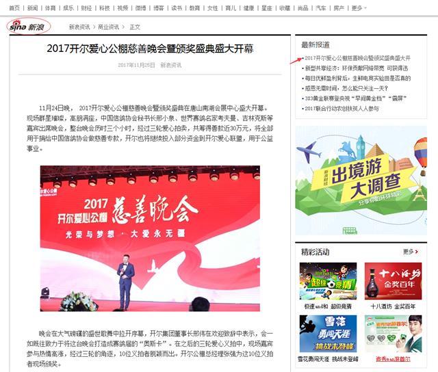 58家媒体报道开尔爱心公棚慈善晚会