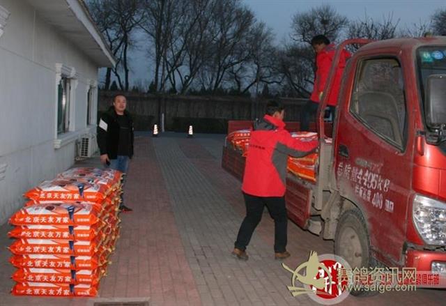 1月18日晚上18:00点,赞助商北京天友万家鸽粮到达俱乐部