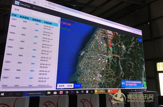 现场大荧幕显示竞翔路径