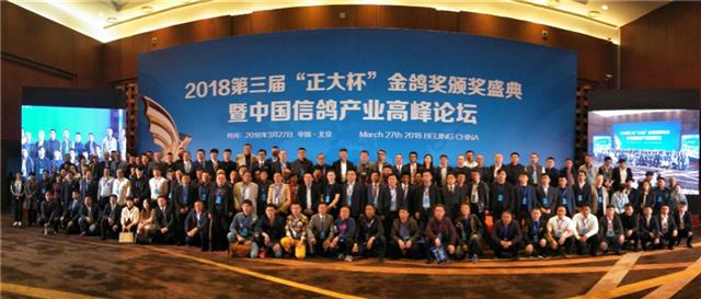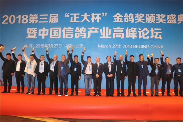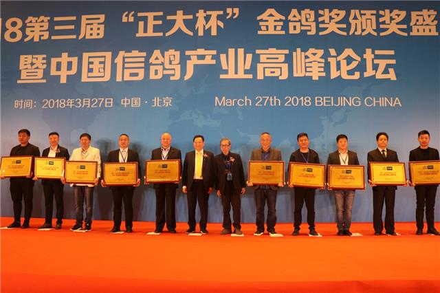 2018年3月27日,第三届“正大杯”金鸽奖颁奖盛典暨中国信鸽产业高峰论坛在北京国家会议中心举行。