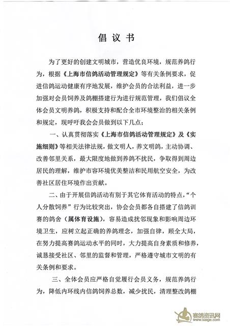文明养鸽倡议书