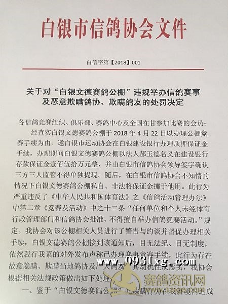 白银文德赛鸽公棚违规事件后续
