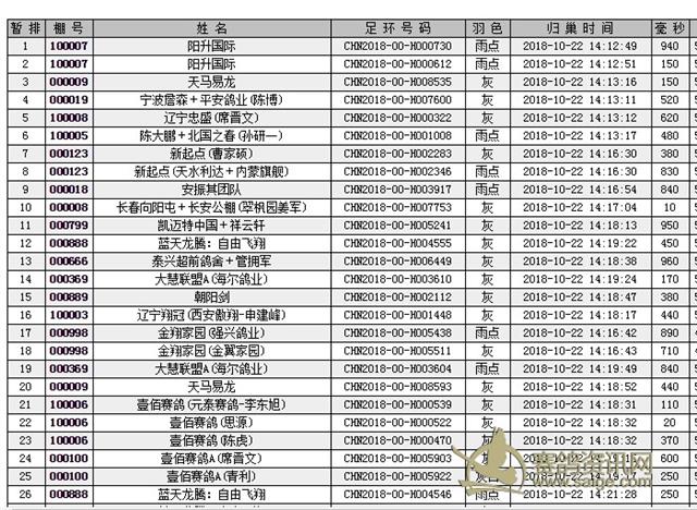 鸽子走势良好, 阳升国际环号CHN2018-00-H000729的鸽子首当其冲, 于中午12点41分37秒归巢, 一举拿下冠军!