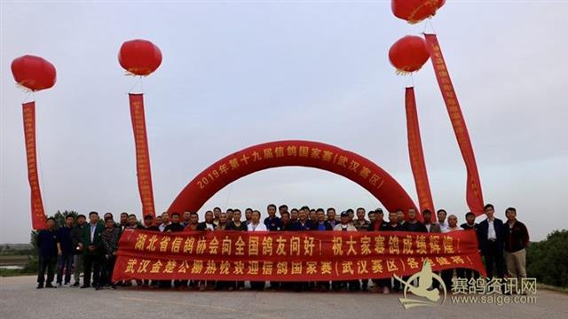 2019年5月20日早5时40分第十九届中国信鸽国家赛武汉赛区在湖北省武汉市东西湖区合丰塆成功开笼放飞。本次赛事有北京市、天津市、河北省石家庄市、河南、山东、安徽、江苏、湖南、浙江、火车头、石油等属下的共33家参赛单位。 此次赛事北京市、天津市为千公里比赛,河北省石家庄市为800公里长距离级别比赛,河南、山东、江苏、湖南、浙江等为中短距离级别比赛,本次国家赛武汉赛区共集鸽9172羽。 5月19日,各参赛单位放鸽车陆续到达赛区检录处,立即与驻守在赛区的组委会工作人员进行参赛检录手续,确保工作顺利开展。 2019年5月20月早晨5时40分,随着赛区裁判长孙炜手中的红旗向下一挥,第十九届中国信鸽国家赛武汉赛区开笼,9172羽赛鸽冲出鸽笼,展翅楚天。 司放地位于武汉市东西湖区合丰塆的河堤上,司放地坐标:北纬30度45分3秒,东经114度6分12秒。天气多云,气温20度,风向西北,风力二三级。 参加这次比赛的赛鸽大多来自北方。赛鸽出笼后未做过多盘旋便以较大群势向北而去。 武汉赛区合丰塆这一处司放点己沿用多年,其位于武汉市北部,地势相对较高,适宜放飞信鸽。 本次武汉赛区裁判长由湖北省信鸽协会副秘书长、国家级裁判孙炜担任。赛区组委会由省体育局社体中心三部主任肖华担纲,组委会中有多位国家级裁判员在各项工作中负责。东西湖区文体局和多年支持国家赛的金楚公棚老总王向召也在现场忙前忙后。 本次武汉赛区虽羽数未过万,但参赛单位涵盖了北京、天津、河北、山东、安徽、浙江、湖南、火车头、石油的三十多家单位,共有大小放飞车16台。官网派出四位记者采访了本次赛事。 以下为第十九届中国信鸽国家赛武汉赛区比赛开笼现场: