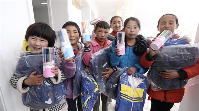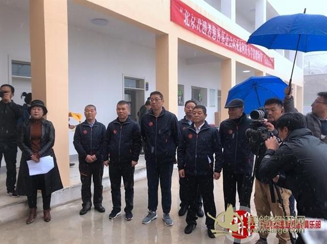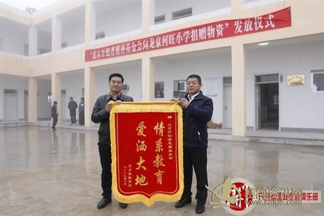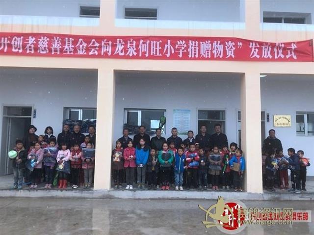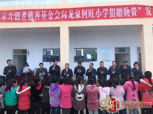 首先由县委副书记李泽文先生致辞。接下来是北京开创者慈善基金会向开创者小学捐赠物资环节,苏总携基金会成员将崭新的学习及体育用品发放给刚同学们。随后,东乡县委副书记李泽文向北京开创者慈善基金会赠予写有“情系教育 爱洒大地”八个字的锦旗。