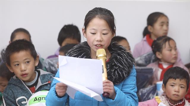 在开创者小学生精彩的吟诵表演和小学校长发言后,台湾海峡两岸鸽友联谊会会长王宗仪先生对开创者希望小学的落成及师生入校表示了祝贺。