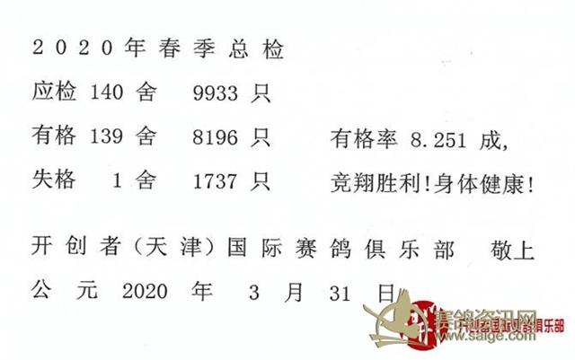 2020年开创者(天津)春季一岁鸽总检圆满结束