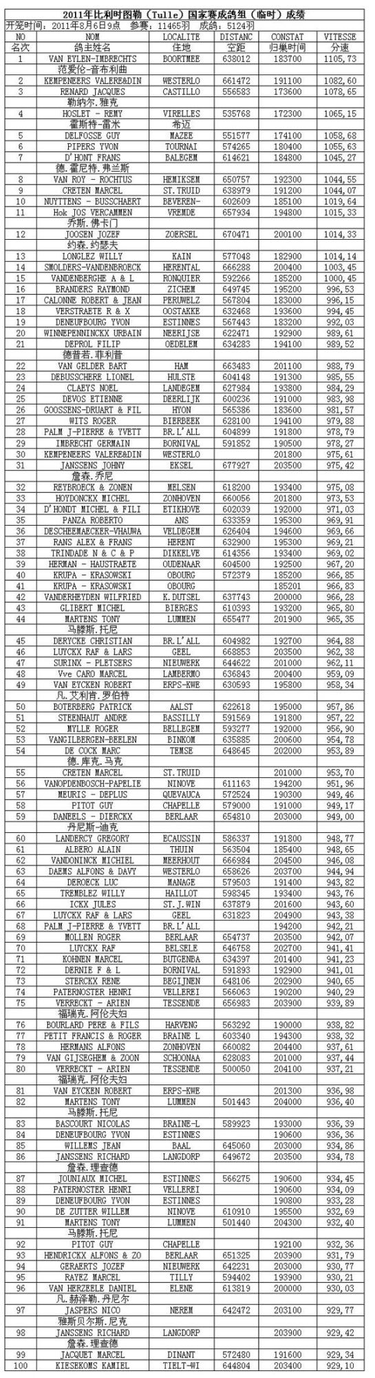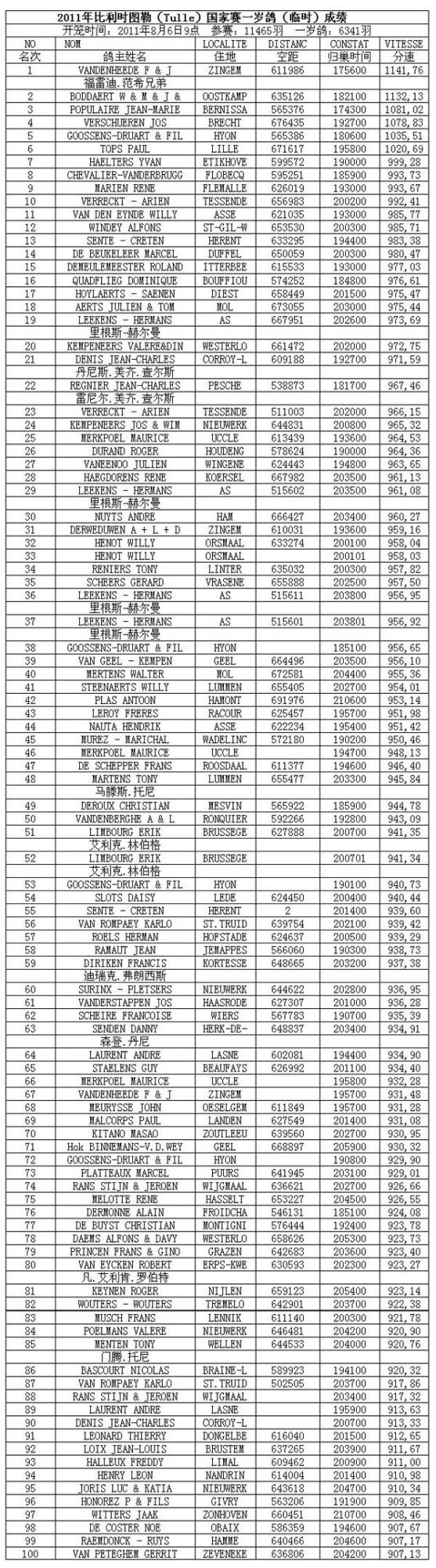 2011年图勒国家赛成鸽组冠军(图)