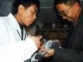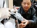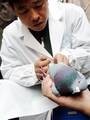 防疫工作人员在给信鸽打禽流感灭活疫苗