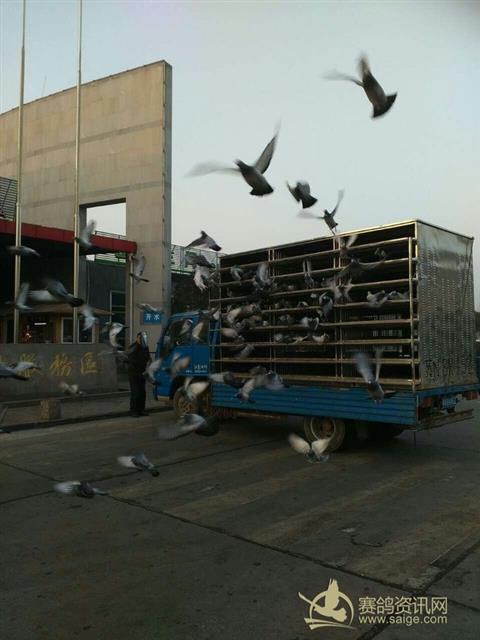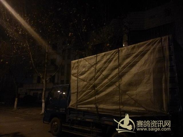 这一场比赛因为气温较低,集鸽完毕我们用塑料油布把赛鸽笼进行了包裹遮挡,以免大家的爱鸽在路途中拉风冻出病来。