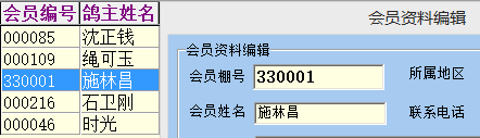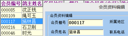 但是,鸽会系统平台中的会员棚号却可以和大家所选出的自己喜欢的棚号相统一,以后集鸽或者查资料时可以直接报现在购买的这个棚号。 比如鸽友施林昌,他在我们标牌做好前就提前预定了第1号棚牌330001,现在就可以把他之前系统自动生成的棚号000117改了,他以后系统中的棚号就和他现在鸽棚上所挂的棚号相一致。