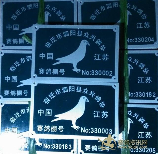 按宿迁市鸽会的要求,我们众兴鸽协做了属于我们鸽会的正式鸽棚标牌,如有需要的鸽友请来鸽会登记购买,30元一张,早买早选好号码。 另外有鸽友要求棚号、会员证、会员卡上的号码最好一致,这样的想法当然是好的,但我觉得不太现实,因为这三个号码可以说是三个不同时期做的事情,现在施行起来困难度较大,而其实也没有这个必要。 就像现在的这个棚号牌,有的鸽友选的是手机尾数,有的鸽友选的是车牌号,有的鸽友选的是儿子的生日,还有的鸽友直接用自己目前飞出最好成绩鸽子的足环尾数作自家的鸽棚号——我觉得大家根据自己的喜好来选号码,这样更人性话岂不更好?!