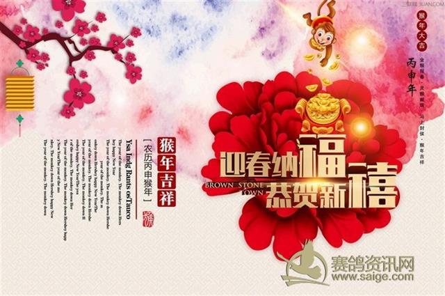 迎金猴,庆佳节,众兴鸽协给广大鸽友们拜年啦! 祝大家: 新春快乐 万事如意 阖家幸福 猴年鸽运亨通! 祝大家的爱鸽: 身强体健 状态骁勇 一马当先 猴年连创佳绩!