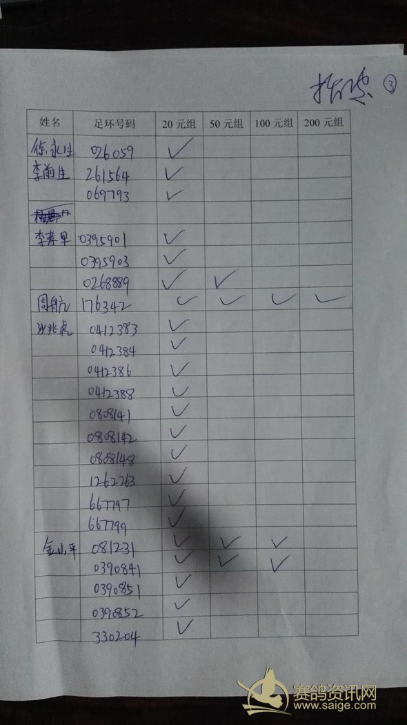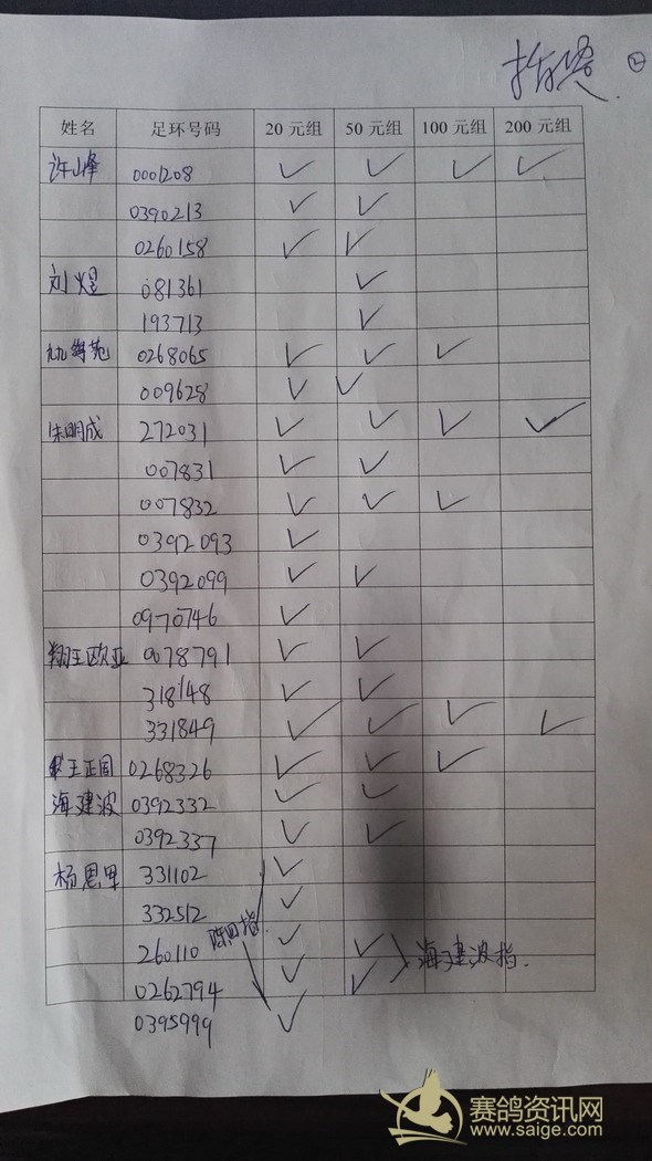 市联翔结束之后,我们对国家赛的策略及时作了调整,目标是希望集鸽羽数能够超过市联翔的317羽,结果昨晚集了401羽,不但超过了还突破了400羽,又是一个全新的数字,实在是一件很让人高兴的事! 可以说,我个人对我们鸽会的期望不仅仅是追求所谓的量,比起量来我更在意的是面,因为面的宽广才能反应出一个鸽会在鸽友心目中的接受度是多少。拿这一场的401羽来说,我看了后台统计,共有102位鸽友来放鸽,而达到10羽或超过10羽的仅有4位鸽友,也就是说有98位鸽友平均只放了3.7只鸽子,这真的算是很分散了,而且都是普环,能够凑到这样的数字真的很不容易。就像我们今年的秋特比,算上替补环,至今拿的最多的一位鸽友也就是80个环,5000多个环也是很分散地卖出去的。这样的覆盖面才是我们努力的方向。 相信随着我们鸽会的努力以及10环的越来越多,以后的国家赛不敢说一定会重现往日荣光,但恢复它应该有的热闹程度还是不成问题的,而且对于我们来说进步的空间还很大,还是那句话,转变是一个过程,需要时间,咱们期待明年吧! 本场集鸽共计401羽,取前40名。 本场四组指定: 20元组,102羽,取前11名; 50元组,61羽,取前7名; 100元组,21羽,取前3名; 200元组,7羽,一把抓。 预祝参赛的鸽友们在明天能够飞到县、市、省乃至全国的高位奖,一战成名!!