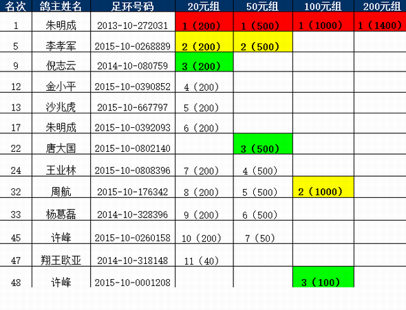 16年春季三关赛顺利跑完,10位鸽王排名如上; 排名公示三日,如有疑问,及时反馈。