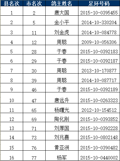 我们泗阳地区的亚军由金小平老师获得,而这名千公里亚军同时也在我们鸽会刚刚结束的春季三关赛的鸽王评选中获得了第十名,恭喜恭喜!期待金老师在竞争更为激烈的秋季赛中和难度系数最高的三关鸽王评选中的表现!