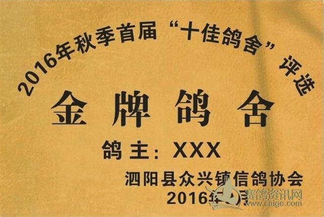 5、 评选目的:在整个秋季赛场上不管我们鸽会还是其余兄弟鸽会在此之前所设的指定、聚宝盆、鸽王等等这些奖项都是针对单羽赛鸽的嘉奖,独缺针对整棚赛鸽的考核奖项,现在“十佳鸽舍”填补了这一空白——“十佳鸽舍”以四场比赛进奖总羽数为标准,将对广大鸽友们整棚赛鸽的“种养训”以及长达一年之久的辛勤付出是否有成效作一个全面彻底地综合性考核,以便让那些具有真正综合实力的赛鸽棚脱颖而出,从而成为日后鸽友们追逐的目标!