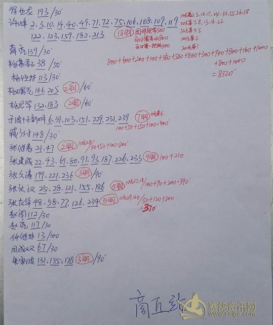 同时开始计算成绩的还有金牌鸽主的评选。 不得不说在这一场300公里的普环赛中许峰许老板能够豪气地一举赢得8300多元真的是让很多鸽友惊讶的,这个金额也足以变成300公里商丘站的一个记录让鸽友们在以后的每一场300公里中试着去打破。而能够赢得这个数字金额的奖金与许老板认准目标集中火力的明智取舍是分不开的,这一点极具借鉴价值! 十佳鸽舍和金牌鸽主这两个评选活动是我们鸽会的首次尝试,目的当然是活跃比赛气氛,增加比赛的激烈程度。 在这一场中飞得不理想的鸽友也不必气馁,下面还有三场,而且空距越来越远,什么样距离的鸽子都有一显身手的机会,所以相信接下来的变数非常大,排名也会越来越精彩! 而接下来的三场是三关鸽王赛和特比环决赛,是我们整个秋赛的重中之重,与之相比300公里这一场只能算是一个热身赛,小老鼠拖木掀大头还在后面,鸽友们努力地空间还很大,让我们期待接下来的每一场比赛! 两组鸽王奖金如下: 幼鸽组:冠军5000、亚军3000、季军2000 综合组:冠军3000、亚军2000、季军1000