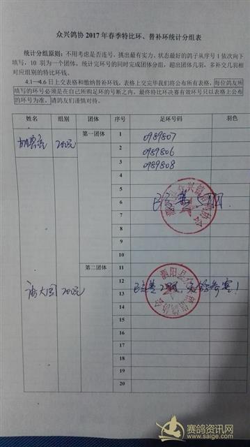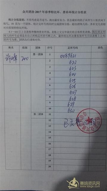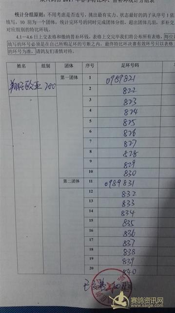 售环名单已公示结束,如再有误并影响最终成绩,本鸽会概不负责。 200元组共计售环69枚,奖金13800元; 取前7名,前3名和团体1名发奖杯; 因售环数偏少,团体奖只取一名。
